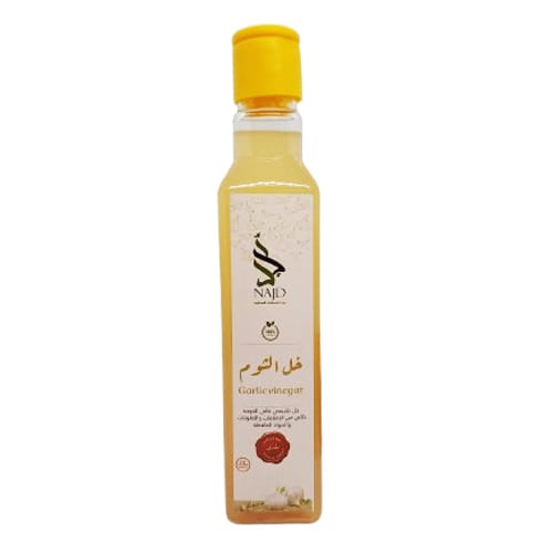 خل ثوم طبيعي عالي الجودة, خالي من الإضافات و الملونات و المواد الحافظة بنسبة حموضة 4%.
