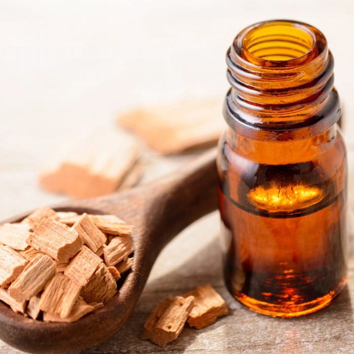 زيت الصندل ذو الرائحة النفاذة. يمكن استخدامه كعطر شخصي أو فواح, و يمكن استخدامه في صناعة الصابون و الشمع